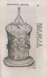 (1543). VITRUVE. DE ARCHITECTURA LIBRI DECEM, ad Augustum Cæsarem accuratis conscripti: & nunc primum in Germania qua potuit diligentia excusi… Strasbourg, in officina Knoblochiana per Georgium Machaeropiaum, 1543. In-8 de [52]-260 (1 à 96 et 99 à 262, sans manque)-[52] pages, veau brun, plats avec encadrement à froid, dos à nerfs (reliure pastiche moderne). Première édition imprimée en Allemagne, donnée par Rivius et illustrée dans le texte de 89 CHARMANTES GRAVURES SUR BOIS représentant des girouettes, des cadrans solaires, des radeaux, des moulins, Archimède dans sa baignoire et divers dessins basés sur ceux de l'édition de 1521, mais en format réduit; le texte est entièrement composé en imprimé en italique. Cette édition se termine par "De staticis experimentalis" de Nicolas de Cues et le "De aquaeductibus" de Frontin. Quelques feuillets restaurés aux angles, sans manque. (Fowler 401) (USTC 674607).