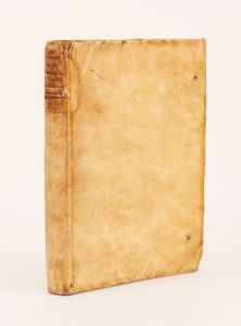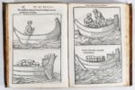 (1547). BAIF (Lazare de). ANNOTATIONES IN L. II. DE CAPTIVIS, ... Paris, Robert Estienne, 1536. 2 parties de [8]- 168-[8]-203-[12] pages, en 1 volume in-4°, velin ivoire à recouvrement (reliure de l'époque). Premier livre illustré réalisé par Robert Estienne, contenant 3 textes de Lazare de Baïf traitant successivement de l'art naval, des vêtements et des vases chez les anciens, ainsi que le fameux traité sur les couleurs d'Antonio Telesio. Le de RE NAVALI, dédié à François 1er est un traité consacré à l'architecture navale et à la navigation des anciens, illustré de 19 bois gravés montrant différents types de navires. Le de RE VESTARIA, dédié à Jean de Lorraine, porte sur l'art de se vêtir à Rome et est orné de 3 figures de costumes. Le de VASCULIS, dédié à Antoine de Bourges, traite de la décoration des vases ; il est illustré de 7 gravures sur bois dont 6 de grands vases et d'aiguières. Le dernier texte est le petit traité des couleurs du poète et philosophe italien Antonio Telesio (1482-1534). Cinq des gravures sont signées de la croix de Lorraine qui pourrait désigner un artiste associé de G. Tory. Bel exemplaire, très pur. (USTC 147011) (Renouard, 44, n° 19) (Schreiber n°53).