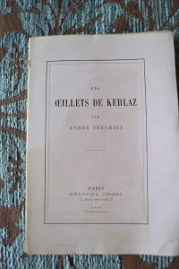 Theuriet (André) - Les Oeillets de Kerlaz , L. Conquet, Paris, 1885, in12 broché tel que paru VII, 77 pp. Édition originale illustrée de quatre eaux-fortes de Rudaux, de huit en-têtes et culs-de-lampe de Giacomelli, gravés par T. de Mare. Un...
