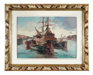 Carlo DOMENICI, Veliero all'ormeggio. — Olio su tavoletta. cm 35x50.