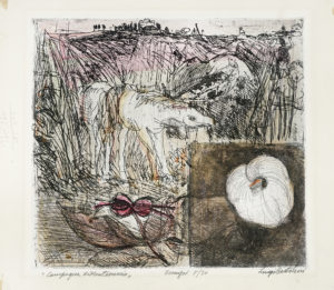 Luigi BARTOLONI, Campagna di Monte Mario. — 1941. Acquaforte acquerellata a mano. — Dimensioni della lastra : mm 280x300. — Dimensioni del foglio : mm 330x380.