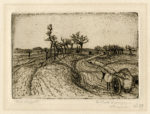 2) La strada di campagna. Acquaforte. mm 105x155. Foglio : mm 255x335. Firmata in lastra in alto a sinistra, controfirmata a matita in basso a sinistra. Titolata a matita in basso a destra.