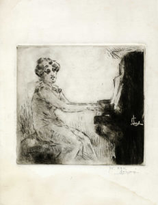 Luigi CONCONI, Fanciulla al pianoforte. — 1913. — Monotipo. — mm 221x234. — Foglio : mm 447x330.