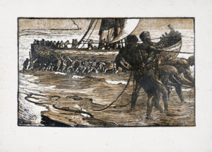 Adolfo De CAROLIS, Il varo. — 1908. — Xilografia a due legni su carta vergellata. — mm 215x350. — Foglio : mm 310x430.