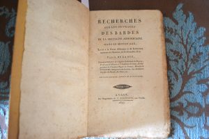 La Rue (G. de) - Recherches sur les ouvrages des bardes de la Bretagne armoricaine dans le Moyen Age. F. Poisson, Caen, 1814. in8 broché, couv. Muette, 74 pp. Edition originale. Bon exemplaire.