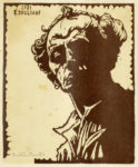 2) Figura con cane. Xilografia. mm 170x125. Foglio : mm 180x135. Firmata a penna e inchiostro di china bruno in basso a destra. Al verso del supporto : Dogliani E., Autoritratto. 1921. Xilografia. mm 145x120. Foglio : mm 158x130. Firma e data in lastra in alto a sinistra. Titolata a matita in basso a sinistra. (2)