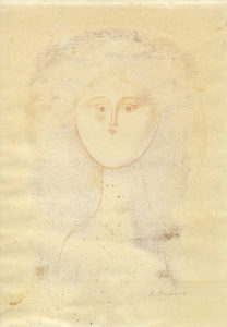 Antonio BUENO, Ritratto di ragazza. — Carboncini e pastelli colorati su carta.