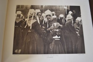 chacune d'une légende en vis à vis. Première série d'héliogravures d'art extraites de la collection bretonne de Raphaël Binet. Présentation de François Jaffrenou. Légendes et descriptions de Léon Le Berre. Remarquable recueil du photographe briochin Raphaël Binet. Dans les 36 clichés réunis dans sa " Collection bretonne ", il a su capter des portraits saisissants de Bretons de l'entre deux guerres rencontrés à Plougastel, Rumengol, Chatel Audren, Erquy, Pont-Aven, Sainte Barbe du Faouët, Sainte Anne La Palue, Pont l'Abbé, Sainte Anne d'Auray, Guéméné, Saint Nicoméde de Baud, Boldévéno, Eckmuhl , Penmarc'h... Quelques petits défauts au dos, mors partiellement fendu (mais “brochage” bien solide .
