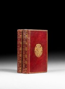 BIBLE. — Traduction nouvelle des pseaumes de David, faite sur l'hébreu. Justifiée par des Remarques sur le génie de la Langue, par M. Laugeois. Paris, Le Mercier, Desaint & Saillant, Savoye, 1762. 2 volumes in-12, maroquin rouge, triple filet doré, armoiries au centre, dos lisse orné, roulette intérieure, tranches dorées (Reliure de l'époque). Édition originale de la traduction complète des psaumes par l'hébraïste Joseph-Michel Laugeois. Exemplaire en grand papier, relié en maroquin aux armes de Marie-Josèphe de Saxe (1731-1767), dauphine de France. Fille de Frédéric-Auguste III, électeur de Saxe et roi de Pologne, elle fut la seconde femme du dauphin Louis de France (fils de Louis XV) et la mère de trois rois qui régnèrent sur la France: Louis XVI, Louis XVIII et Charles X. Sa bibliothèque personnelle ne contenait que des livres de piété et des ouvrages en petit nombre sur la théologie l'histoire, la musique et les beaux-arts, généralement bien reliés (cf. Quentin Bauchart, Les Femmes bibliophiles de France, t. II, pp. 91-104). L'exemplaire a figuré au Bulletin Morgand (novembre 1895, n°26699). Ex-libris manuscrit daté 1860 sur les gardes. Petit éclat à une coiffe