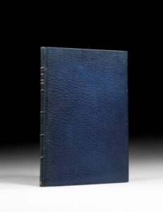 BOSSUET (Jacques-Bénigne de) Oraison funèbre de Henriette Anne d'Angleterre, duchesse d'Orléans. Prononcée à Saint Denis le 21 jour d'Aoust 1670. Paris, Sébastien Mabre-Cramoisy, 1670. In-4, maroquin bleu, janséniste, dentelle intérieure, tranches dorées (Riviere & Son). Édition originale. De la bibliothèque Michel Dubos (2019, n°262). Un ex-libris arraché. Décharge de la dorure de la dentelle intérieure sur les gardes en regard