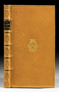 LA FAYETTE (comtesse de) La Princesse de Montpensier. Jouxte la Copie, à Paris, Thomas Jolly, 1671. Petit in-12, maroquin citron, triple filet doré, petites armoiries dorées au centre, dos orné, pièce de titre verte, dentelle intérieure, tranches dorées (Amand). Première édition hollandaise, imprimée en gros caractères, laquelle s'annexe à la collection elzévirienne (Willems, n°1857). Très joli exemplaire aux armes du comte Joseph de Lagondie (1879, n°543). Des bibliothèques Louis Masurier et docteur Bernard Jean (1992, n°89)