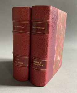 BARBEY D'AUREVILLY (Jules) Oeuvres complètes. Publiées pour la première fois avec les corrections de l'auteur et les variantes. Accompagnées de notes littéraires et historiques. Paris, Typographie François Bernouard, 1926-1927. 17 volumes grand in-8, demi-skaï maroquiné aubergine, tête dorée, à toutes marges, couverture et dos (Reliure vers 1950). Édition collective en partie originale, comprenant: Les Diaboliques, L'Ensorcelée, Le Chevalier des Touches, Poèmes, Une Vieille maîtresse (2 volumes), Un Prêtre marié (2 volumes), L'Amour impossible, Ce qui ne meurt pas et La Bague d'Annibal (2 volumes), Une Histoire sans nom suivie d'Une Page d'histoire et de Memoranda (3e et 4e), Memoranda (1er et 2e), et Lettres à Trébutien, inédites (4 volumes). Un des 50 exemplaires sur hollande. Dos passé