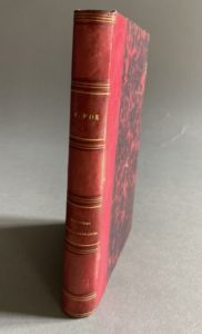 POE (Edgar) Histoires extraordinaires. Paris, Michel Lévy frères, 1856. In-12, demi-basane rouge, dos lisse orné de filets dorés et à froid, tranches mouchetées (Reliure de l'époque). Édition originale de la traduction de Charles Baudelaire. Exemplaire en reliure de l'époque. Nombreuses rousseurs claires. Dos un peu fané