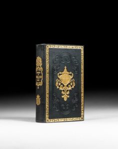 GOLDSMITH An Abridged History of England, from the Invasion of Julius Caesar to the Death of George II. Paris, Baudry, 1840. In-8, chagrin vert anglais, plaques dorée et à froid sur les plats, dos lisse orné, tranches dorées (Boutigny). Fraîche reliure de l'éditeur exécutée par Boutigny, signée de son étiquette. Quelques légères rousseurs. On joint: ROGERS (Samuel). Italy, a Poem. London, T. Cadell, E. Moxon, 1836. In-8, cuir de Russie rouge, décor de fers dorés (Reliure de l'éditeur). Piqûres. Défauts aux charnières (restaurées et fendillées)