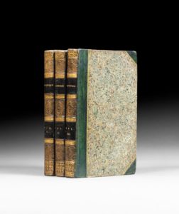 SCOTT (Walter) Ensemble 4 ouvrages en édition originale, reliures d'époque, états divers. The Lay of the last Minstrel. A Poem. London, J. Murray, 1821. In-12, veau vert. — St Ronan's Well. Edinburgh, A. Constable and Co..., 1824. 3 volumes in-12, demi-veau vert. — Rob Roy. Edinburgh, James Ballantyne, A. Constable and Co, 1824. 4 parties en 2 volumes in-12, demi-basane rouge. — Woodstock; or the Cavalier. A Tale of the year sixteen hundred and fifty-one. Edinburgh, A. Constable and Co..., 1826. 3 volumes in-12, demi-veau vert
