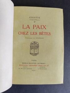 COLETTE La Paix chez les bêtes. Paris, Georges Crès et Cie, 1916. In-12, demi-maroquin rouge …