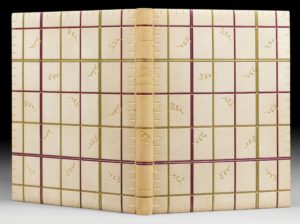 COLETTE La Treille muscate. S.l.n.d. [Paris, 1932]. In-4, maroquin crème, plats et dos ornés d'un quadrillage de filets dorés et de minces bandes mosaïquées de veau olive et violet, petites vrilles dorées ici et là, encadrement intérieur de même maroquin avec rappel du décor, doublure et gardes de moire fuschia, doubles gardes de papier moucheté d'or, tranches dorées sur témoins, couverture et dos, chemise demi-veau vert à bande et étui (G. Cretté succ. de Marius Michel). Édition ornée de 36 eaux-fortes originales de Dunoyer de Segonzac. Cette illustration compte parmi les meilleures réalisations de l'artiste. Tirage à 165 exemplaires numérotés sur hollande, celui-ci enrichi d'un dessin original de l'artiste. Belle reliure de Georges Cretté au décor évoquant une treille. Dos très légèrement foncé. Dos de la chemise passé