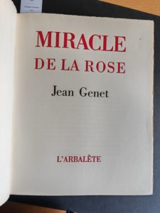 GENET (Jean) Le Miracle de la rose. Lyon, L'Arbalète, [1946]. Fort volume in-4, cartonnage de …