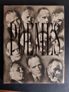 GENET (Jean) Poèmes. [Lyon], L'Arbalète, 1948. In-4, broché, couverture illustrée rempliée, sous jaquette de rhodoïd imprimée en noir du titre et du nom de l'auteur. Première édition collective, en partie originale, ornée d'une couverture illustrée de plusieurs portraits photographiques de Genet par Douchan Stanimirovitch. Tirage à 1000 exemplaires sur pur fil Lana, celui-ci numéroté. Le dos de la couverture commence à se décoller de l'ouvrage. Petits manques à la jaquette de rhodoïd