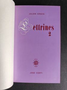 GRACQ (Julien) Lettrines 2. Paris, José Corti, 1974. In-12, maroquin aubergine, janséniste, …