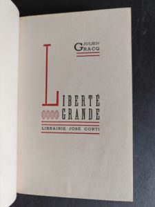 GRACQ (Julien) Liberté grande. Paris, José Corti, 1946. In-12, reliure à encadrement de …