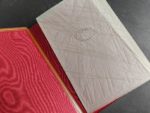 GREEN (Julien) Le Mauvais lieu. Paris, Plon, 1977. In-12, maroquin marron clair, plats ornés d'une composition de forme elliptique en partie mosaïquée avec œil stylisé doré au milieu de celle-ci, le tout surchargé d'une multitude de filets à l'or et au palladium venant de tous les sens dont quelques-uns se poursuivent sur le dos, dos lisse portant le titre et le nom de l'auteur à l'oeser blanc, filet doré intérieur, doublure et gardes de moire bordeaux, tranches dorées sur témoins, couverture et dos, étui (Devauchelle). Édition originale. Un des 40 exemplaires sur hollande, premier grand papier. Reliure originale de Devauchelle, dont le décor évoque un visage avec deux yeux
