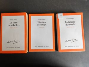 GREEN (Julien) La Terre est si belle... Journal. 1976-1978. — La Lumière du monde. Journal. 1978-1981. — Histoires de vertige. Nouvelles. Paris, Éditions du Seuil, 1982-1983-1984. Ensemble 3 ouvrages en 3 volumes in-8, broché. Éditions originales. Exemplaires sur vergé de Lana, seul grand papier (tirage à 75 exemplaires pour chaque volume)