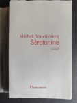 HOUELLEBECQ (Michel) Sérotonine. Paris, Flammarion, 2019. In-8, broché, non coupé. Édition originale. Un des 200 exemplaires sur vélin de Rivoli, seul grand papier. Dans Sérotonine, l'auteur dresse l'implacable bilan d'une génération confrontée à l'échec des idéaux de sa jeunesse, à l'inhumanisation des villes, à la destruction des campagnes et des agriculteurs traditionnels, à l'ultra-libéralisation de l'économie, à la soumission à des modèles culturels consuméristes, au sentiment d'impuissance, à la résignation politique (Patrick Kessel, in Humanisme, 2019/2). Exemplaire à l'état de neuf
