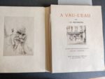 HUYSMANS (Joris-Karl) À Vau-l'eau. Paris, Georges Courville, 1933. In-4, en feuilles, couverture rempliée, chemise et étui de l'éditeur. Première édition illustrée, ornée de 19 eaux-fortes et pointes sèches d'Edgar Chahine. Tirage à 215 exemplaires, celui-ci un des 20 sur japon impérial contenant un dessin original et une suite des gravures avec remarque