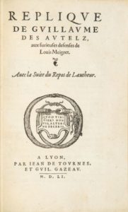 DES AUTELS (Guillaume). Replique aux furieuses defenses de Louis Meigret. Avec la Suite du Repos …