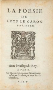 LE CARON (Louis). La Poésie. Paris, Pour Vincent Sertenas, 1554. In-8, maroquin bleu nuit, …