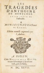 MONTCHRESTIEN (Antoine de). Les Tragédies. Édition nouvelle augmentée par l'Autheur. Rouen, …