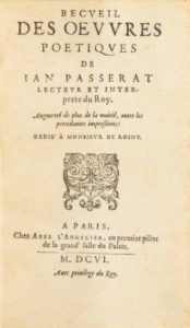 PASSERAT (Jean). Recueil des œuvres poetiques. Augmenté de plus de la moitié, outre les …