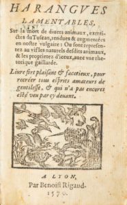 PONTOUX (Claude de). - LANDO (Horatio). Harangues lamentables, sur la mort de divers animaux, …
