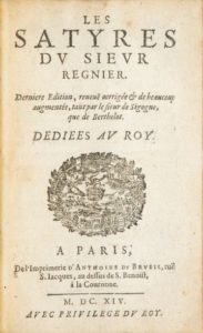 RÉGNIER (Mathurin). Les Satyres. Derniere Edition, reveuë corrigée & de beaucoup augmentée, …