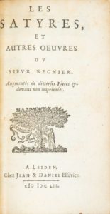 RÉGNIER (Mathurin). Les Satyres, et autres œuvres. Leyde, Jean & Daniel Elzevier, 1652. In-12, …