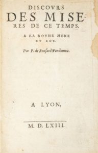 RONSARD (Pierre de). Discours des miseres de ce temps. Lyon, s.n., 1563. Plaquette in-8 de 8 …