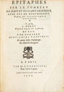 RONSARD (Pierre de) et Jean DORAT. Epitaphes sur le tombeau de haut et puissant seigneur Anne duc …