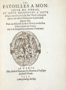 RONSARD (Pierre de). Les Estoilles à Monsieur de Pibrac, et deux Responses à deux Elegies …