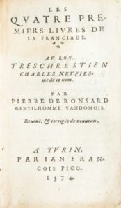 RONSARD (Pierre de). Les Quatre premiers livres de la Franciade. Reveuë, & corrigée de nouveau. …