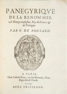 RONSARD (Pierre de). Panegyrique de la renommee, à Henry troisiesme, Roy de France & de Poloigne. …
