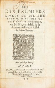 SALEL (Hugues). - HOMÈRE. Les Dix premiers livres de l'Iliade d'Homère [...]. Paris, Pour …