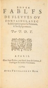 [TYARD (Pontus de)]. Douze fables de fleuves ou fontaines, avec la description pour la Peinture, & …