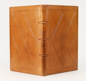 (1547). HOLBEIN. ICONES HISTORIARUM VETERIS TESTAMENTI. Lyon, Jean Frellon, 1547. Petit in-4° de 52 feuillets, veau fauve sur ais de bois, jeu de filets à froid sur les plats, dos à 3 nerfs (Josse Schavye, signature manuscrite). Cette nouvelle édition des Figures de la Bible d'Holbein contient 98 FIGURES, soit 6 de plus que le tirage de 1538; les 4 figures des Evangélistes réunis au verso de l'avant dernier feuillet paraissent ici pour la première fois. Il existe de cette édition deux tirages différents. Celui-ci, dont les épreuves sont très encrées, appartient au second tirage avec le mot Emendatiores du titre sans tiret. Un quatrain de Gilles Corrozet en français est placé sous chaque figure et un commentaire en latin occupe le haut de chaque page. Fines réparations de papier en marge de 2 feuillets, l'exemplaire est beau à grandes marges. (USTC 47522, 2 ex.) (Brunet II, 252) (Mortimer, French n°282) (Baudrier V, 209).
