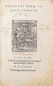 (1548). BEZE (Théodore de). POEMATA. Paris, Conrad Bade pour Robert Estienne, 1548. In-8 de 100 …