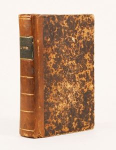 (1551). VIVES (J.L.). DE DISCIPLINIS LIBRI XX in tres tomos distincti quorum ordinem versa pagella indicabit. Cum indice copiosissimo. Lyon, Jean Frellon, 1551. In-8 de [40]-613-[1] pages, demi-basane brune, dos lisse (reliure du XIX°). Ouvrage le plus important de J.C. Vivès, né en 1491 à Valence, célèbre représentant de l'humanisme espagnol. Ce travail sur l'enseignement et l'instruction a paru pour la première fois en 1531 à Anvers. Galeries marginales sur plusieurs feuillets avec atteinte sur qq. lettres, ex-libris manuscrit. (Baudrier V, 224) (USTC 150805).
