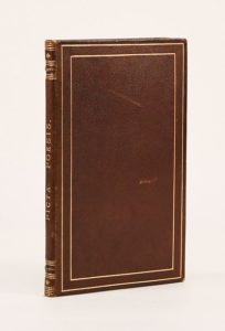 (1552). ANEAU (Barthélémy). PICTA POESIS. Lyon, Macé Bonhomme, 1552. In-8 de 118-[2] pages, chagrin terra-cotta, double filet doré sur les plats, dos orné avec titre doré en long, frise dorée intérieure, tranches dorées (reliure du XIX°). Edition princeps de l'un des plus charmants livres d'emblèmes publié à l'époque. Il est illustré de 108 VIGNETTES dont 2 répétées, la plupart mesurant 36 x 50, finement gravées sur cuivre par Pierre Eskrich. L'une d'entre-elles, destinée à flétrir la corruption des magistrats fut supprimée dans les éditions postérieures. Exemplaire grand de marges, très pur d'épreuves, bien conservé dans une reliure romantique bien exécutée. Des bibliothèques Atkinson et Huth, avec les ex-libris. (Brun, p. 111) (USTC151179) (Baudrier X, 227) (Mortimer French, n° 25).