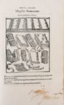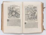 (1552). [GELENIUS (S)]. NOTITIA UTRAQUE DIGNITATUM, CUM ORIENTIS, TUM OCCIDENTIS... Bâle. Jérôme Froben, 1552. In-folio de 108 feuillets non chiffrés, velin souple (reliure ancienne). Rare édition originale procurée par Sigismond Gelenius (1497-1554), humaniste tchèque, installé à Bâle vers 1524; elle fut réimprimée à plusieurs reprises avec les commentaires de Gui Panciroli. Ce recueil est publié d'après un almanach manuscrit pour l'Empire byzantin de l'année 408, aujourd'hui disparu. Il est illustré de 106 BOIS GRAVES montrant des costumes, des uniformes de dignitaires, de nombreux objets usuels, des plans de villes dont Rome ou Constantinople. Parmi ces planches, celles qui représentent des livres, des codex ou des reliures sont restées célèbres. (Caillet 8271) (Brunet IV, 111) (USTC 678431). Relié à la suite: SAINT ISIDORE - CAPELLA (M). ORIGINUM LIBRI VIGINTI EX ANTIQUITATE ERUTI... DE NUPTIJS PHILOLOGIAE & MERCURI. Bâle, Pierre Perna, 1577. 2 parties de [6] ff.-550 col.- [16] ff- 240 col.-[2] ff. Première édition de la réunion de 2 ouvrages savants dont l'Originum de Saint Isidore considéré comme la première encyclopédie. Quelques graphiques gravés sur bois. (USTC, 667207). Rousseurs sur le second livre, petit manque et usures au velin, déchirure au titre.