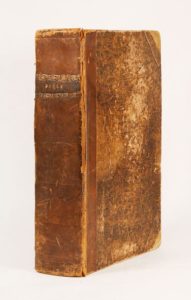 (1554). BIBLE. LA SAINTE BIBLE. Lyon, Jean de Tournes, 1554. 3 parties de [12]-507-[1]; 433-[1]-[16]; 248 (mal chiffr. 288)-[6]-1bl. pages, en 1 volume in-folio, demi-basane, dos lisse (reliure postérieure). «Cette édition de 1554 est la première des Bibles in-folio publiées par Jean de Tournes qui contiennent une partie des bois de la suite des quadrins historiques dûs au crayon du Petit Bernard. Il y en a 181 dans l'Ancien Testament, plus 11 grandes planches gravées expressément pour les Bibles in-folio... Imprimé en caractères neufs, c'est l'une des plus belles productions de Jean I» (Cartier). Titre doublé, réparations en marge des premiers feuillets et au dernier, qq. feuillets rognés courts avec manque, qq. taches et rousseurs, tache claire au feuillet 343, charnières usées. Exemplaire réglé à l'encre rouge, signe de premier tirage, ex-libris manuscrit «Grégoire». (Cartier n°266) (USTC 1118).