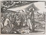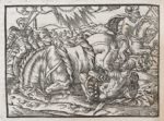 (1554). LUTHER (Martin). HAUSPOSTIL UBER DIE SONTAGS UND DER FÜRNEMBSTEN FEST EVANGELIA DURCH DAS GANTZE JAR... Nurnberg, Johan Vomberg et Ulrich Neuber, 1554. 3 parties de [10]-180-186-119-[1] feuillets, reliées en 1 volume in-folio, veau estampé sur ais de bois, larges bordures à personnages bibliques, dos à nerfs, fermoirs de cuir (reliure de l'époque). Edition abondamment illustrée des célèbres «Hauspostille» de Luther. Plusieurs fois imprimé à Nuremberg, ce recueil de sermons domestiques expliquant les textes bibliques était destiné à l'instruction personnelle et aidait les pasteurs à la préparation de leurs sermons lus à haute voix au temple. L'illustration se compose de 3 titres encadrés et de 97 GRAVURES dans le texte, certaines avec le Monogramme HB du graveur Hans Brosamer (1495-1554). Dernier feuillet déchiré avec manque, rousseurs éparses, qq. taches et cernes, passages caviardés, annotations manuscrites, une charnière ouverte, la reliure est complète de ses fermoirs d'origine. (USTC, 661771).